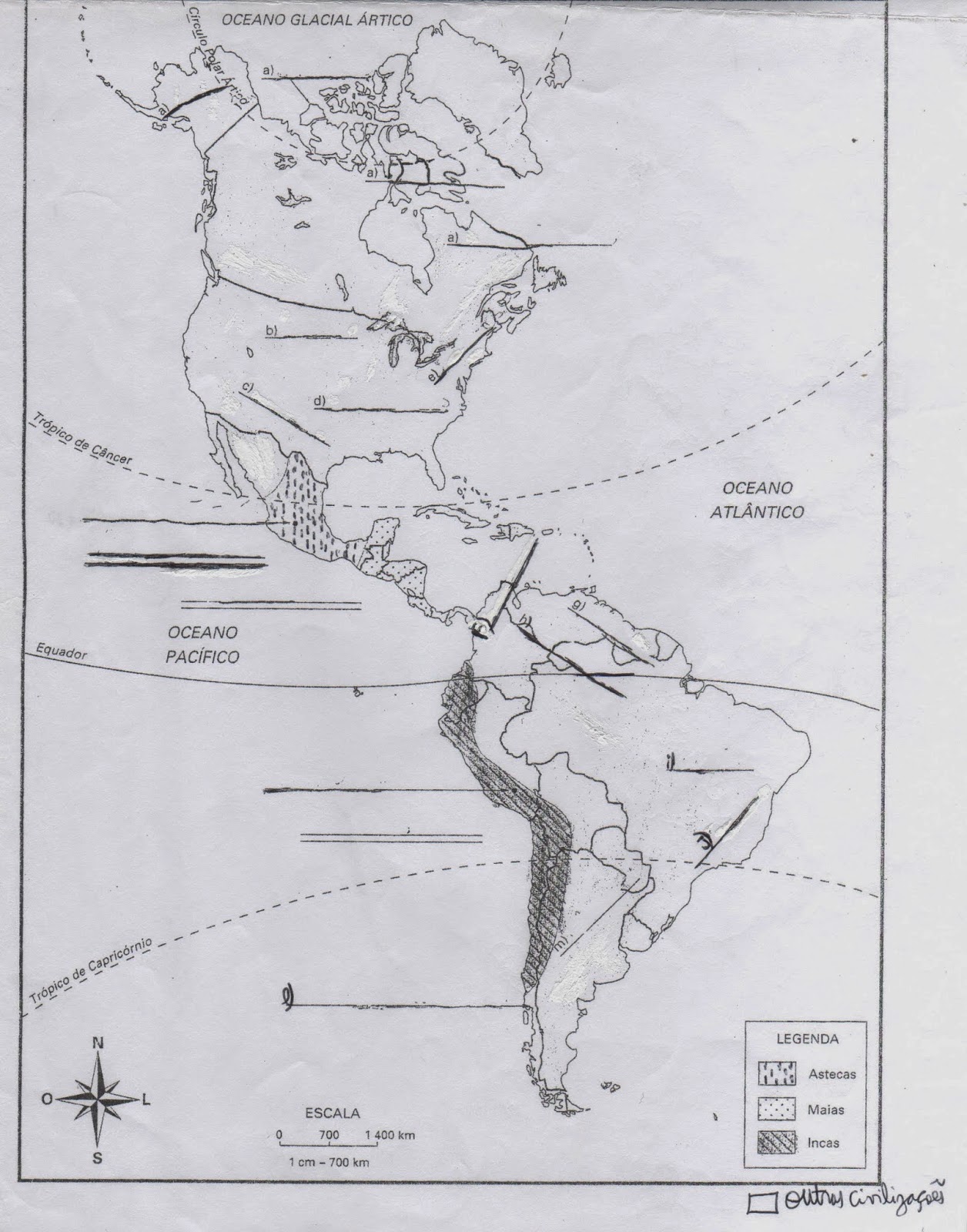 3) Coloque os nomes sobre as linhas duplas: Astecas, Maias e Incas.